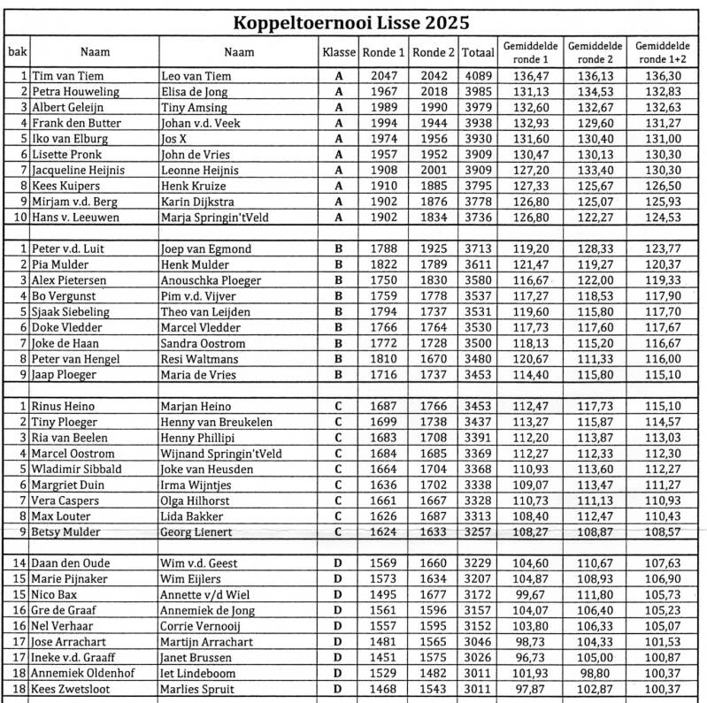 SA -18- (spelsysteem: NUMBERS – toernooien in 12 dorpen Hoeksche Waard en top)