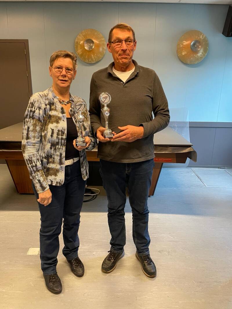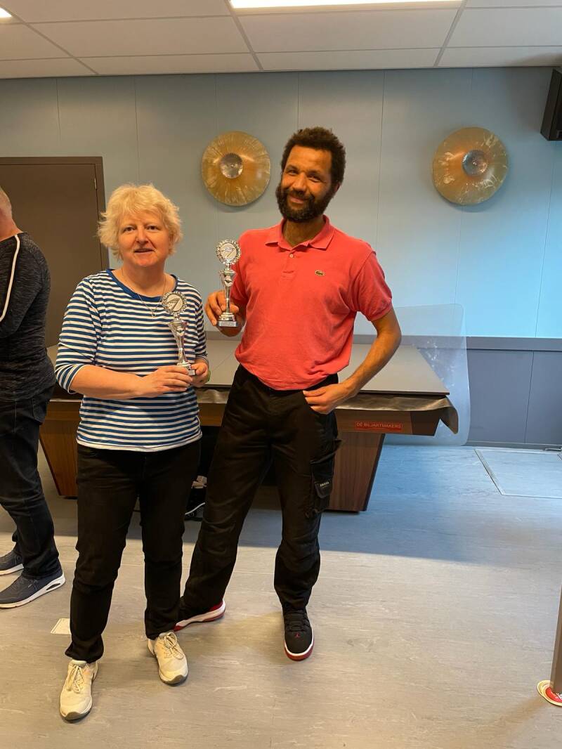 Voor Albert Geleijn en Tiny Amsing een 2de plaats in de A-klasse met een mooie 131, 30 gemiddelde.