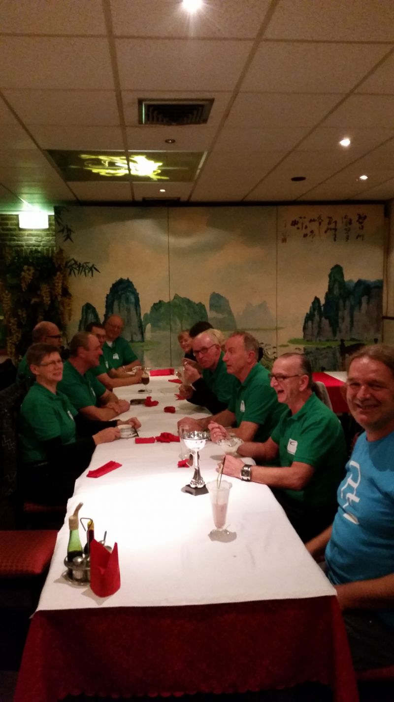 Maar al deze resultaten konden de pret niet drukken na afloop. Met 13 man en vrouw uit eten bij de chinees in Barneveld.