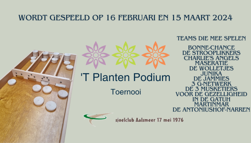 Hij is weer gespeeld het Planten Podium Toernooi 2024. Terwijl ieder probeerde om het team waar ze mee aan de bak zaten te verslaan, vele teams stonden in punten vlak bij elkaar, was het toch vooral heel gezellig deze avond. Er volgden ook vele juich kreten door de zaal bij een goede score, Maar wat we ook beamen is dat het niet minder moet worden aan teams. Hopelijk gaan meer sjoelers hun best doen om een team te formeren. Je hebt allemaal buren, familie of vrienden die je juist kan uitdagen om het sjoelen te proberen. En echt de gezelligheid staat vooral voorop, en heus het was ook zeeeeeeeer gezellig!!!