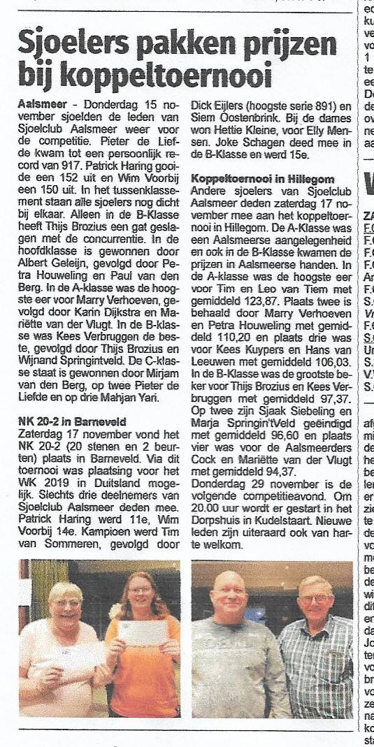 SA -69- (Politiek over sjoelen - historie – Klazienaveen – Top 10 Dames en Heren Je komt steeds iets