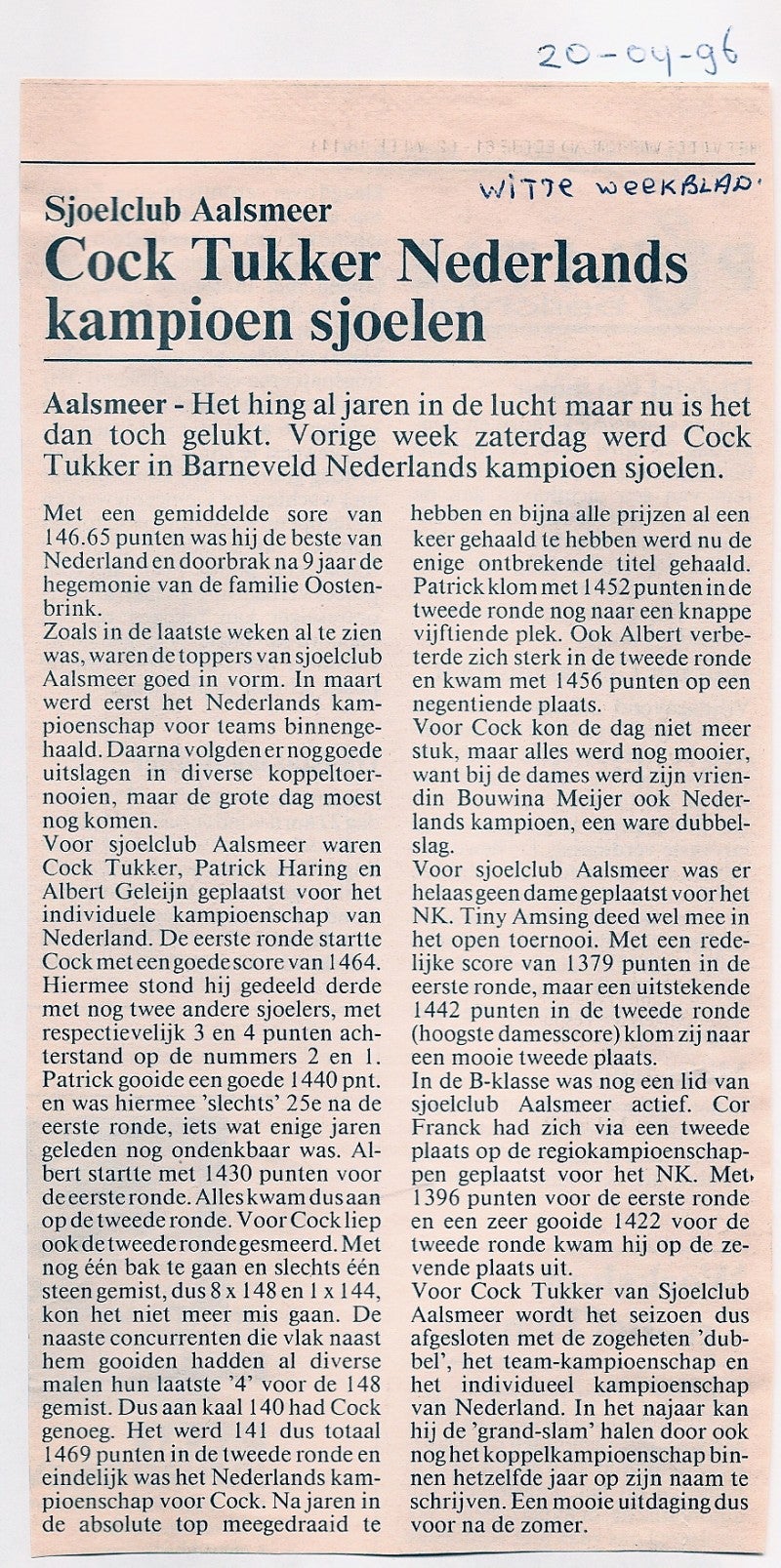 SA -70- (NK-Individueel – Grafiek 1.480 en hoger – sjoelen in de media – historie 1994 - foto van he