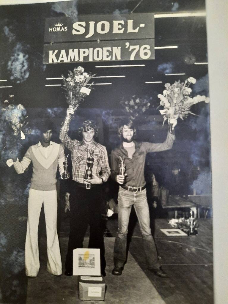 Het was een spektakel. Tijdens de jeugd finale kwam er, voor iedereen onaangekondigd, een tamboerkorps binnenlopen, muziek makend en wel. In de hallen was de akoestiek er niet op gemaakt en voor de concentratie van de jeugdsjoelers niet zo best. Ik adviseerde mijn broer Frank (in overleg met de scheidsrechter) te wachten met sjoelen, tot de fanfare weer was vertrokken. Na afloop mocht mijn broer de rest van zijn sjoelbakken spelen, indien hij theoretisch nog kans had bij de eerste drie te komen. Hij had nog kans en kon toen in alle rust in zijn eentje, verder sjoelen en werd Europees Kampioen bij de jeugd. De tactiek had haar intrede gedaan!