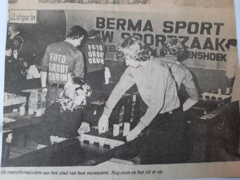 Ronny Swiersema sjoelde 281 keer de 148 punten bij elkaar. Dat zelfde presteerde hij in 62 beurten, maar dan in twee gooibeurten (zoals de krant het aangeeft), dus twee onderbeurten. Ronny kreeg destijds GEEN BONUS SCHIJF!