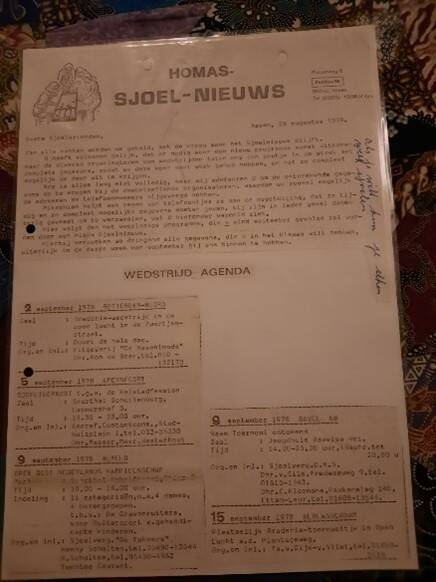 Homas-Sjoelnieuws was het orgaan, waardoor elke sjoeler wist waar de toernooien waren. Elke week kon je wel een toernooi sjoelen. De wedstrijd agenda stond VOL. Nog geen internet, geen mobiel!
