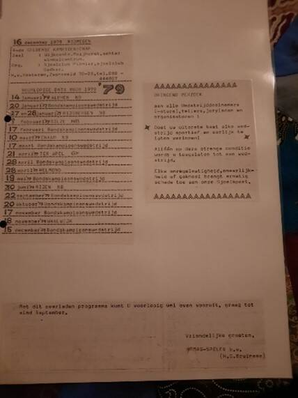 Verkleind weergegeven 1 HOMAS-Nieuwsblad van 3 pagina’s. Hierop de aankondiging van 41 wedstrijden