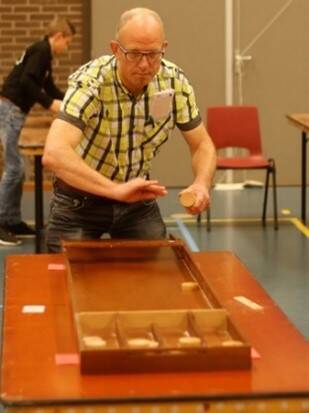 Wat wij wel doen is, op de dag zelf, de “ranking” bepalen tijdens de Bekerwedstrijd, door tien bakken te sjoelen.