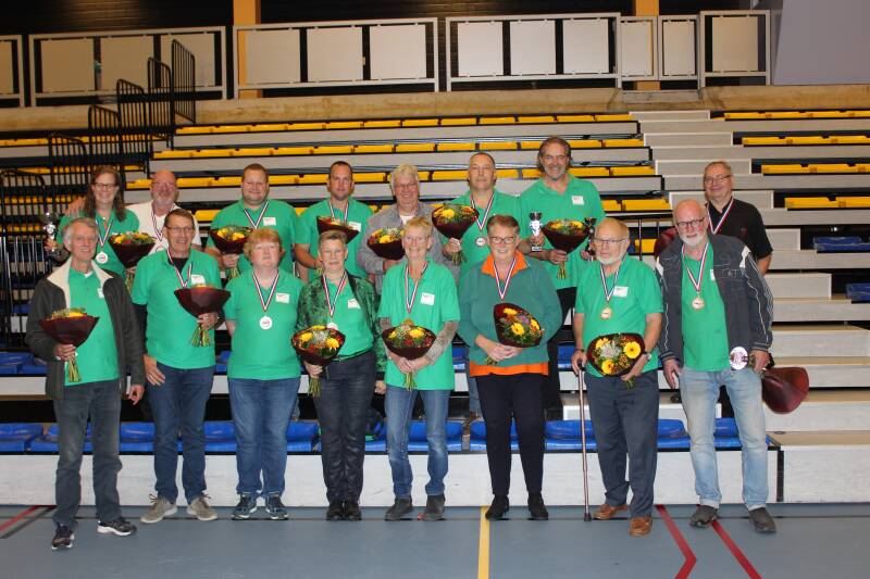 In de Veluwehal in Barneveld vond afgelopen zaterdag 15 oktober het NK Teams(joelen) plaats. Om 10.30 uur stonden slechts 28 teams van 4 personen aan de start om te sjoelen om het hoogste podium te bereiken. Sjoelclub Aalsmeer kwam met 5 teams aan de start, met in begrip van enkele sjoelers van andere clubs.